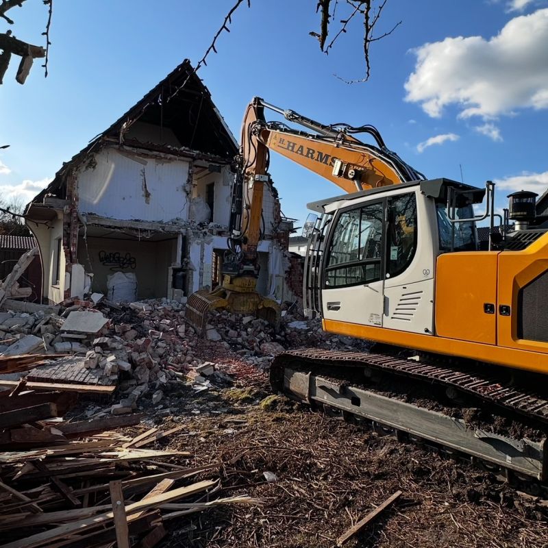Wir übernehmen für Sie Abbrucharbeiten – von kleinen Gebäuden wie Garagen oder Anbauten bis hin zu umfangreichen Industrieabbrüchen. Dabei kümmern wir uns selbstverständlich auch um die fachgerechte Entfernung und Beseitigung von Schadstoffen. Im Anschluss führen wir auch gerne die Erdarbeiten durch. Dazu zählen insbesondere der Einbau und die Verdichtung von Sand sowie der Bau von Baustraßen.