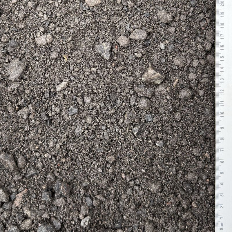 Mittelkörniger Asphaltaufbruch für Baustraßen, Zufahrten und temporäre Nutzflächen. Lässt sich gut verdichten, hat aber eine begrenzte Tragfähigkeit. Das Material ist nicht frostsicher.